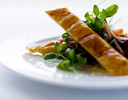 Sallad med rökt lax med haricots verts och pepparrotscrème